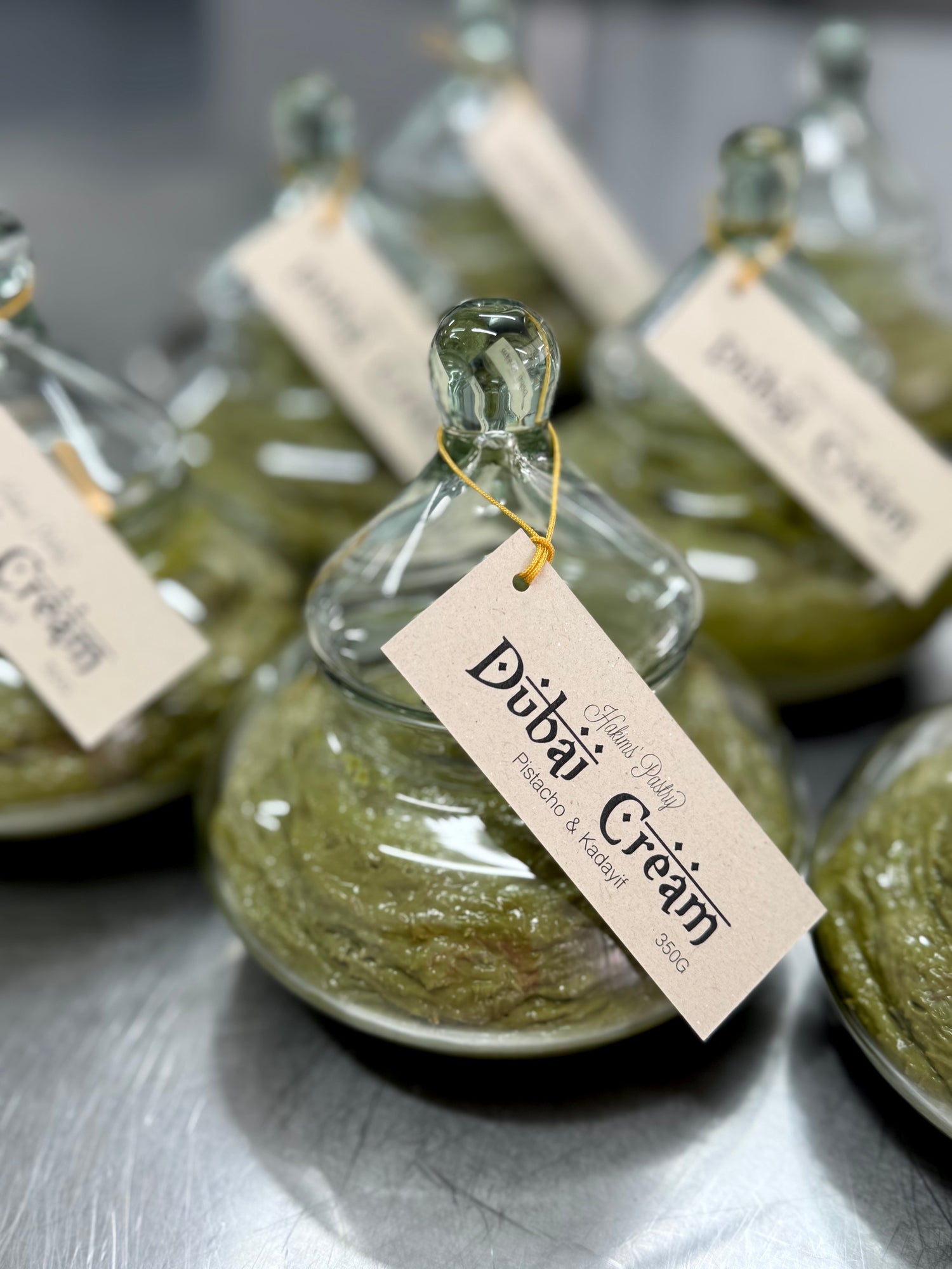 Elaborada con auténtico pistacho del Medio Oriente y delicados fideos crujientes de masa filo (kadayif), logra una textura irresistible: cremosa por dentro, crocante por fuera.