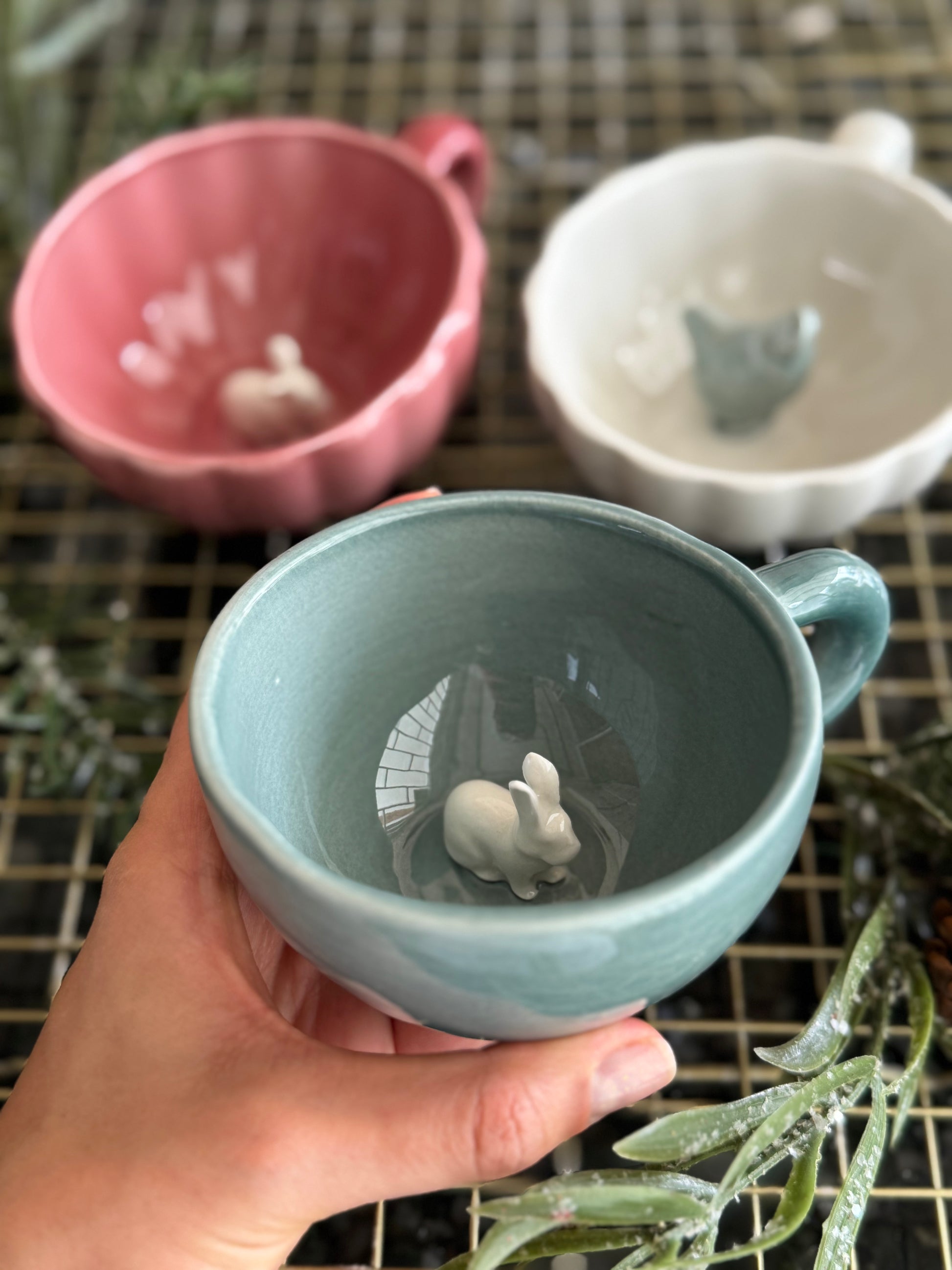 Combo Trebolarte x Hakims: un regalo único que une una taza sorpresa en cerámica hecha a mano con un tubo de Mini Brownie Bites artesanales. Cada taza viene con un animalito diferente, siempre sorpresa, y cada uno representa ingredientes reales que usamos en nuestras recetas: